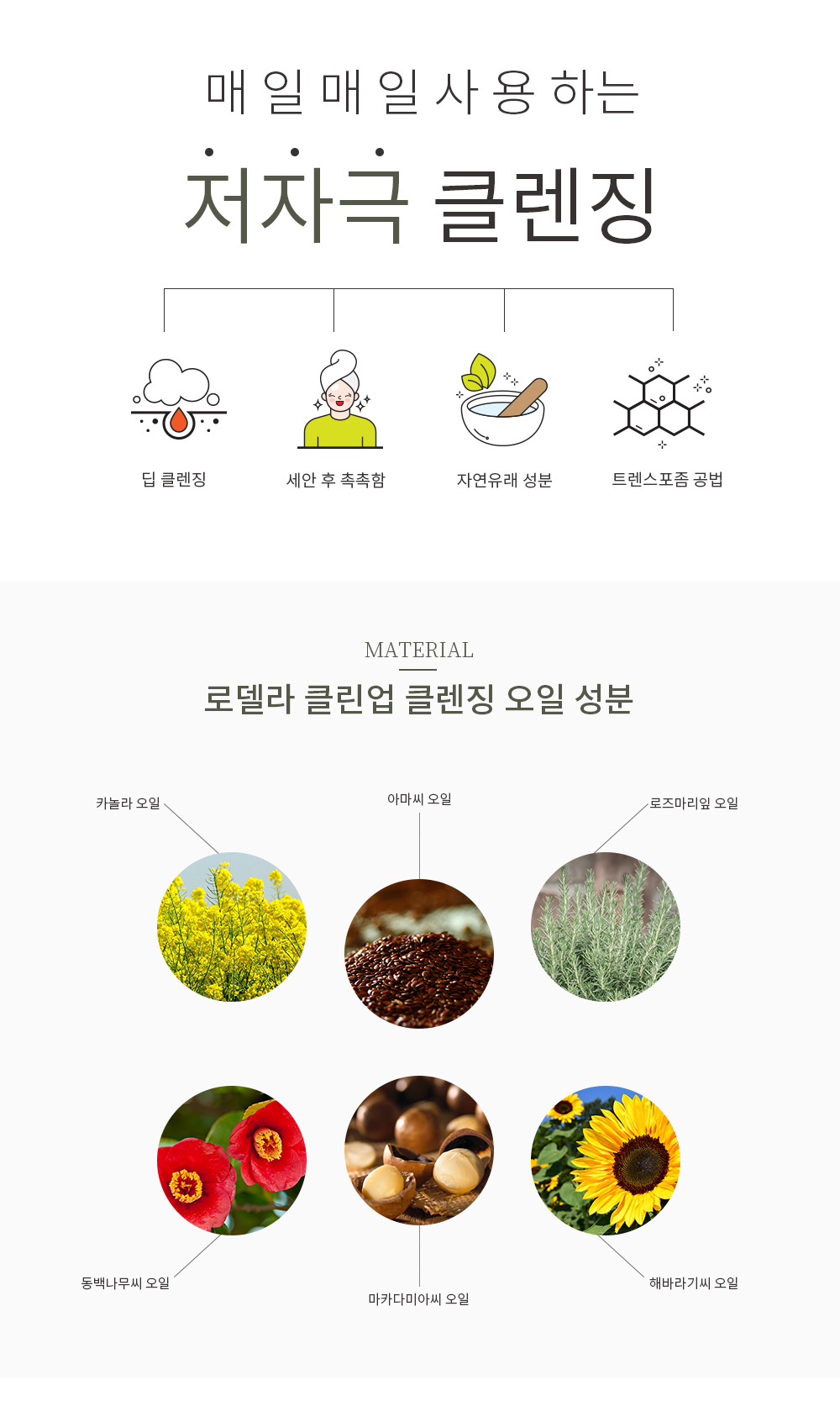A gentle daily cleansing oil that melts away makeup and impurities while helping the skin stay soft and comfortable after washing. The formula focuses on mildness, moisture, and thorough pore cleansing.